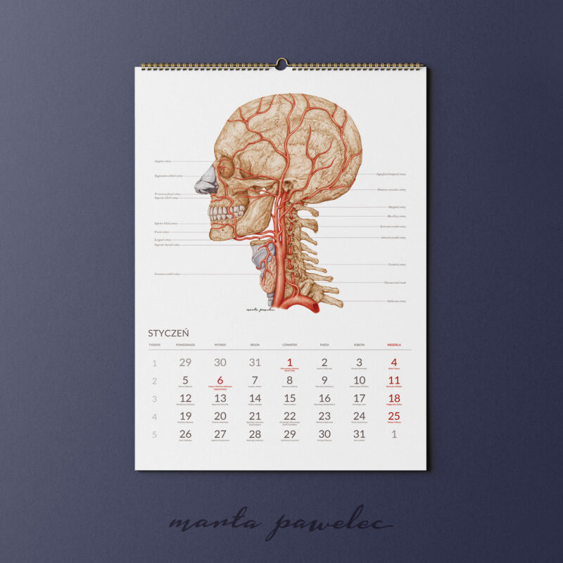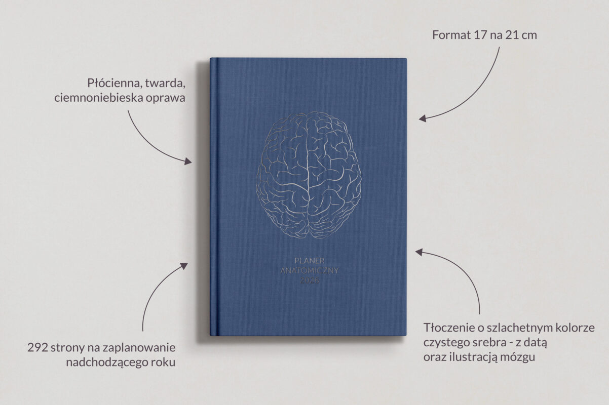 Znajdziesz tu także jedyny, niepowtarzalny i oryginalny Kalendarz Anatomiczny. Każdego roku pojawia się nowe wydanie: to 13 kolorowych kart z dokładną, medyczną ilustracją na każdy miesiąc w roku. To wspaniały pomysł na prezent pod choinkę dla studenta medycyny czy osoby zafascynowanej budową człowieka. Możesz także zamówić Planner Anatomiczny na bieżący rok. Taki Medyczny Terminarz to bardzo przydatny przedmiot, kiedy chcesz rozpisać godziny spotkań z pacjentami lub pory wykładów na uczelni.