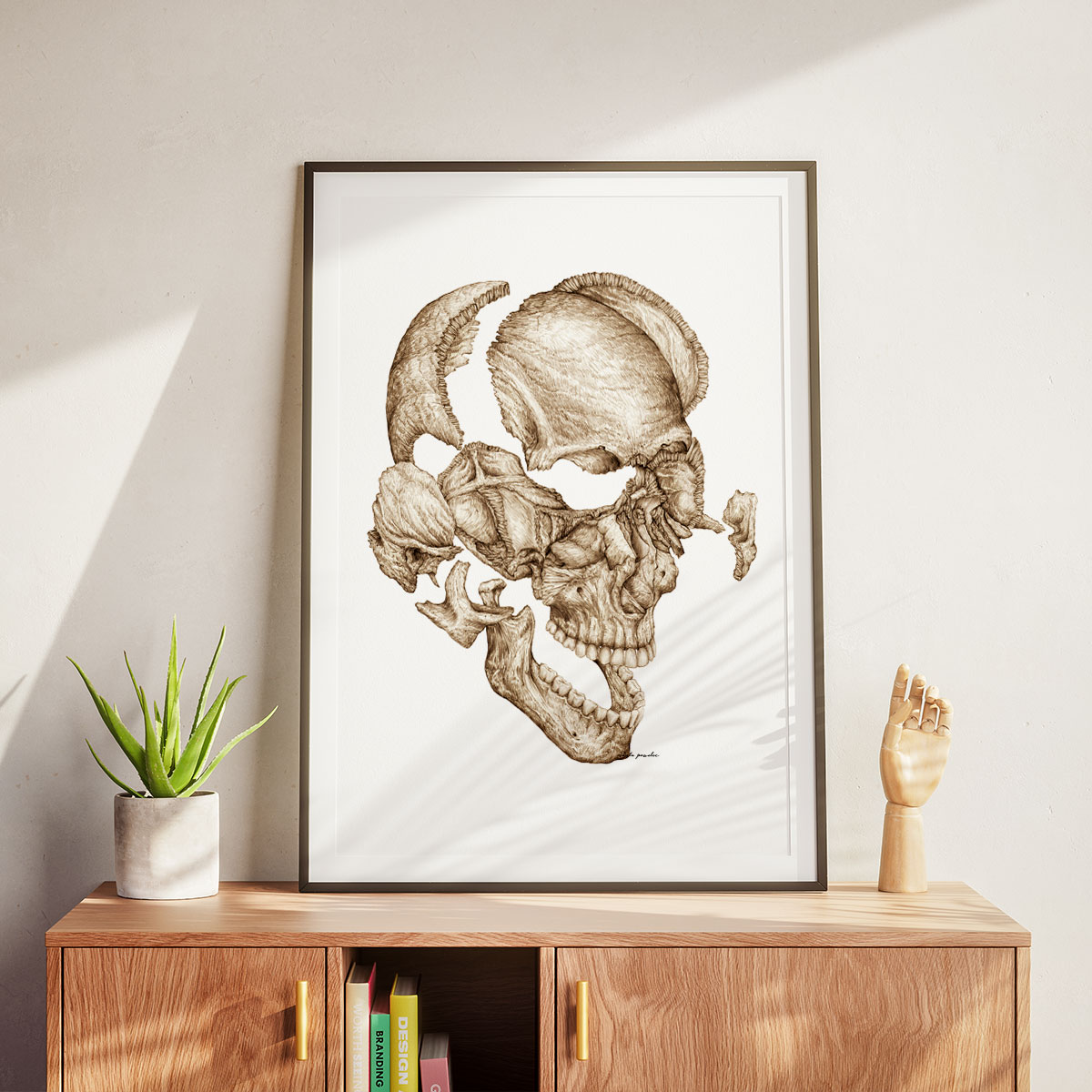 Ilustrację stworzyła doświadczona ilustratorka medyczna, bazująca na aktualnych źródłach anatomicznych. Grafika wyróżnia się wysoką dokładnością oraz zgodnością z najnowszymi badaniami, co pozwala lepiej poznać układ kostny czaszki. Co więcej, dokładne przedstawienie każdej z kości ułatwia ich identyfikację, co znacząco wspiera proces nauki.