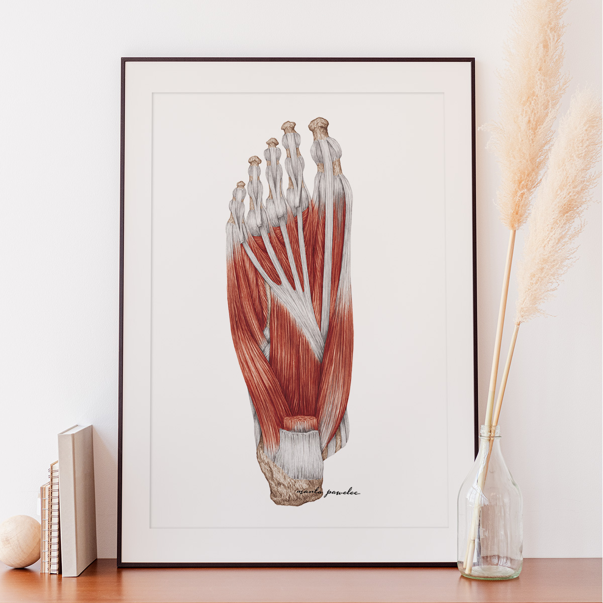 Plakat anatomiczny – Mięśnie podeszwowe stopy (format B2, 50×70 cm)